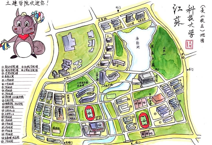 学院吉祥物“砼砼”也来到迎新现场,为一路奔波的新同学们带来欢笑,为烈日下忙碌的志愿者们带来凉爽。为帮助新生尽快熟悉新校园,融入新家庭,传递学院温暖,bwin必赢的同学们还精心准备了手绘版的“长山校区地图”。
