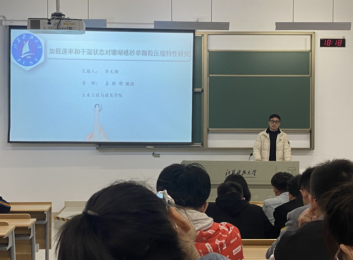会议伊始,2020级研究生班长李天翔就自身课题“加载速率和干湿状态对珊瑚礁砂单颗粒压缩特性研究”为例,具体展开分析如何抓住论文的撰写重点以及论文的撰写顺序,同时就同学们更为关注论文撰写要点进行了进一步阐述,细致地背景资料讲解如何查阅合适的、数据的处理分析过程以及结论的归纳要点;之后,杨新峰就自身撰写论文的经历向大家详细阐述了论文的写作流程,主要包括研究的背景、研究内容、研究方法、结果、讨论与结论、引言和摘要七个部分。他提出,作为研究生,要善于总结规律,深层分析本质,在总结前人经验的基础上提出自己的创新点,这样才能事半功倍,并表示,希望通过分享自身经验为大家的学术之路贡献绵薄之力。