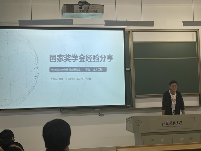 会议伊始,2019级研究生吴联棒作经验分享,重点对国家奖学金的评选综合计分标准进行讲解,主要包括思想政治、学习成绩、社会活动和科研能力四个方面,吴联棒着重强调了科研能力的重要性,就论文“怎么看、怎么写”提出了自己的见解。之后,2019级班长董鑫重点对国家奖学金的规则进行解读,并对此提出了自己的建议,分享了有关论文、专利等撰写经验,最后鼓励大家提前明确目标,生活中勤于思考,理论知识与试验数据相结合,努力做到知行结合。