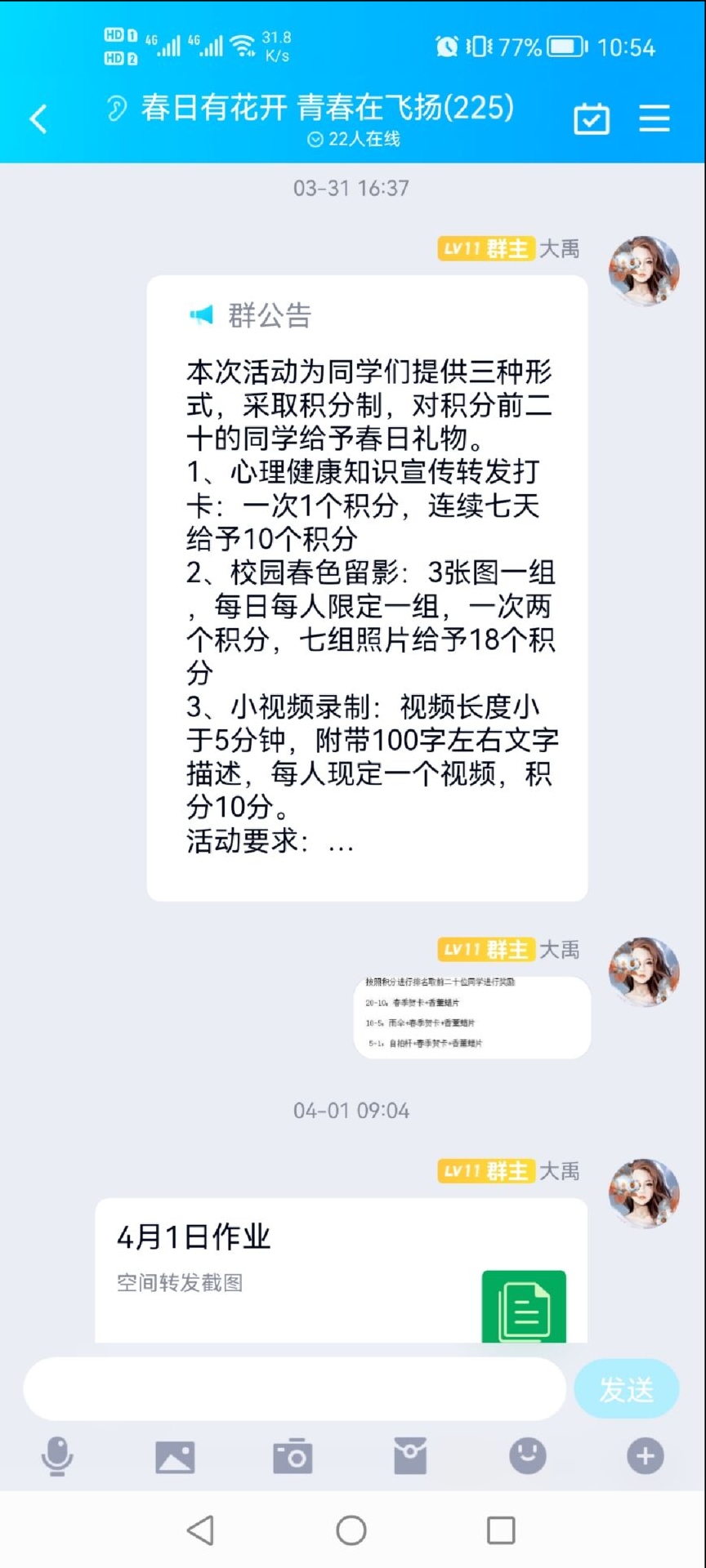 为了进一步推动我校大学生心理健康教育工作,促进大学生健康成长,围绕“向阳携行 共创未来”主题,bwin必赢于4月1日在线上开展为期7天的“春日有花开,青春在飞扬”探春打卡活动,活动面向全校学生,引导大学生树立“珍爱生命、心向阳光、砥砺前行、共创未来”的理念,激发学生向上向善、面向未来的奋斗力量,与时代共舞、与同伴协行。