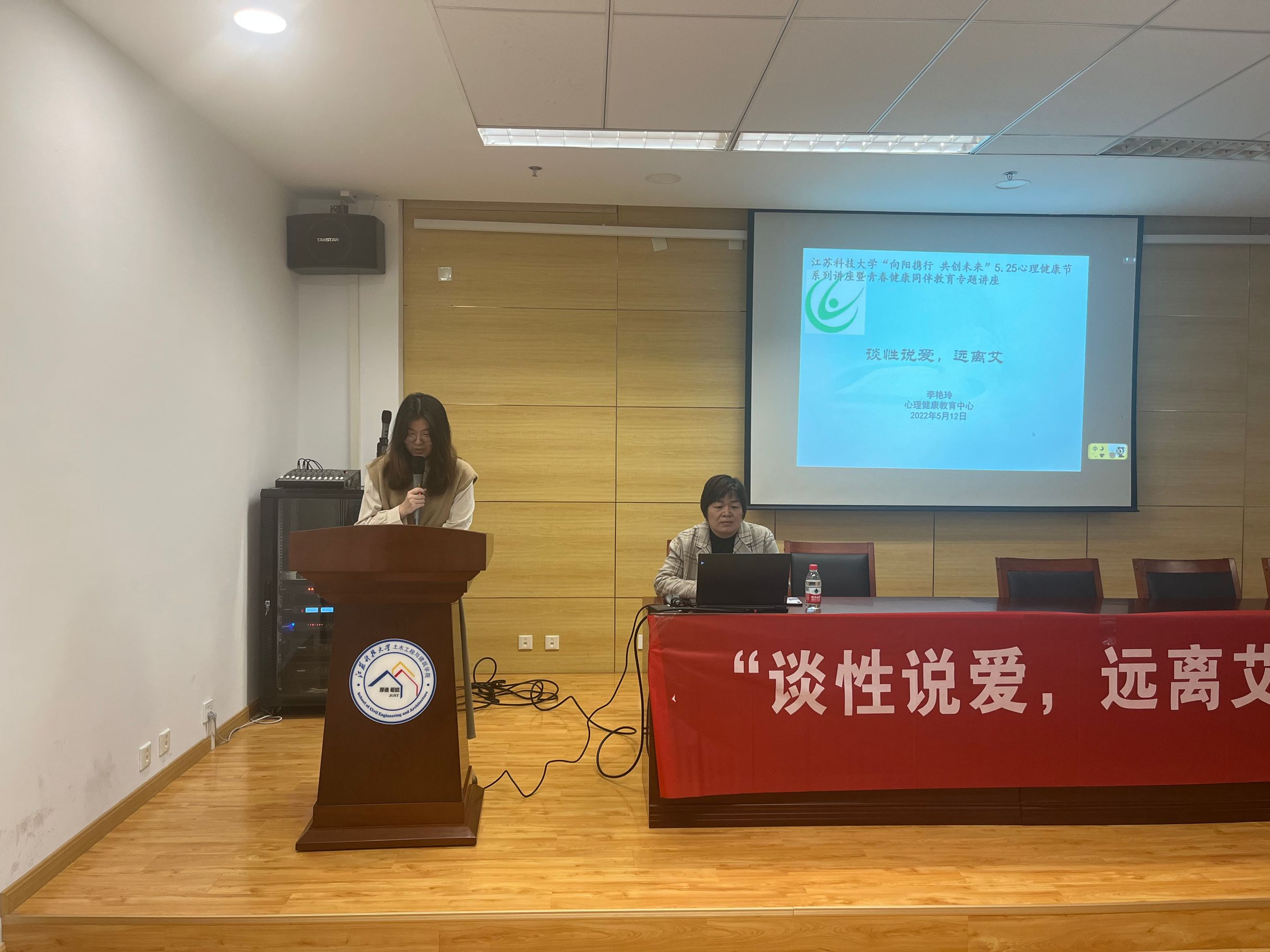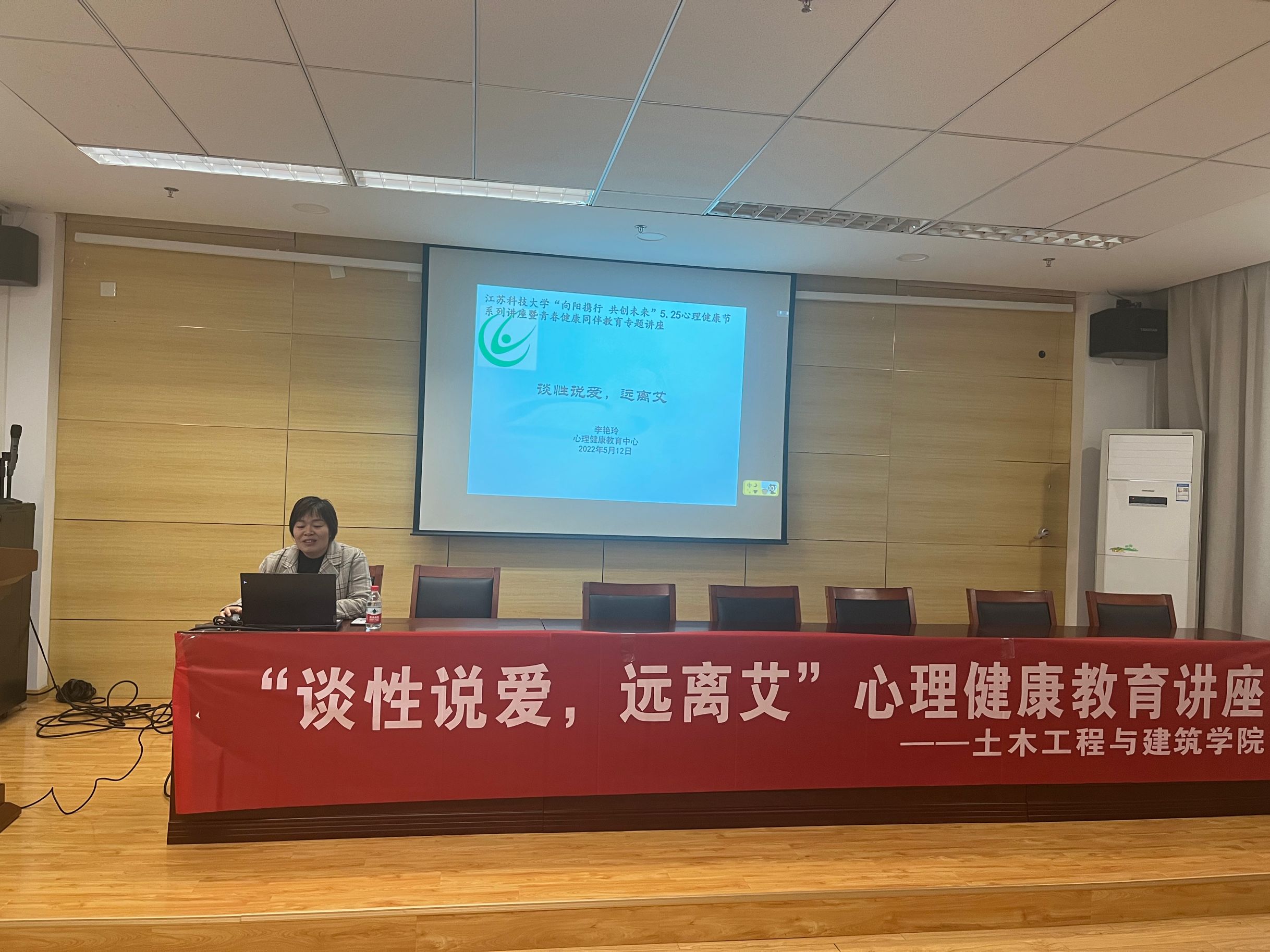 2022年5月12日下午,bwin必赢于土建楼302室举办了“谈性说爱,远离艾”主题讲座。江苏科技大学心理健康教育中心李艳玲老师受邀担任此次主讲。线下参与共43人。