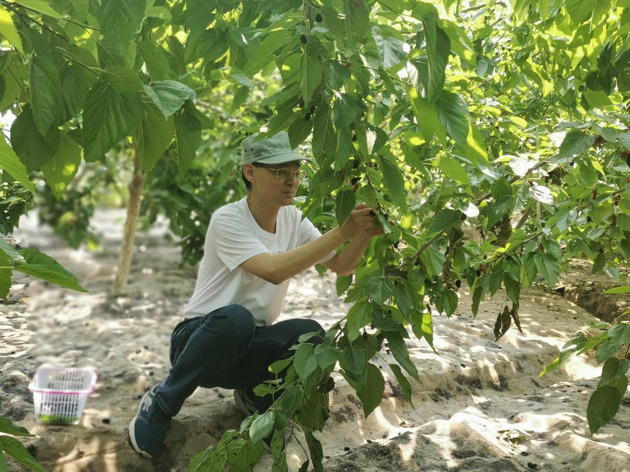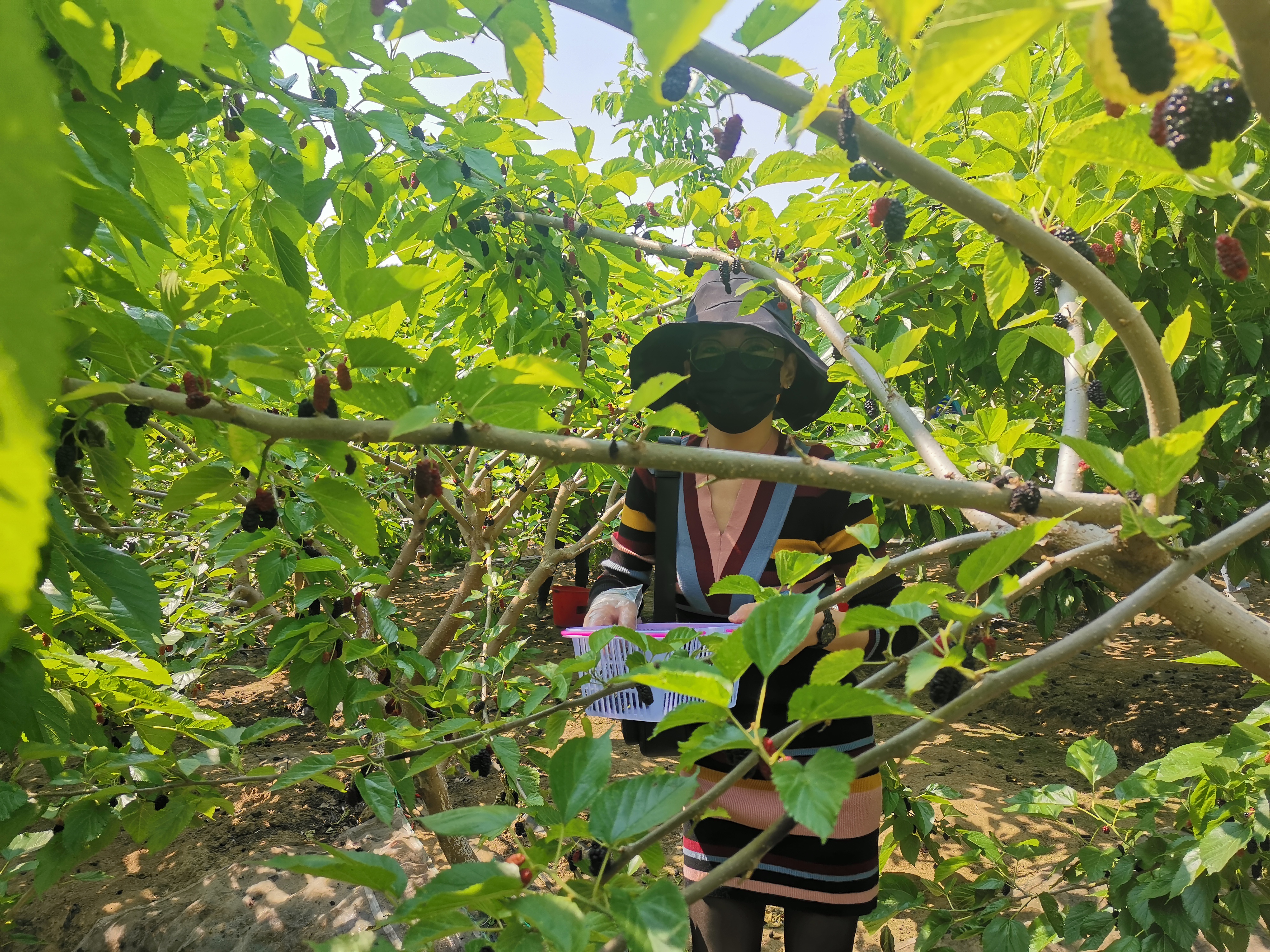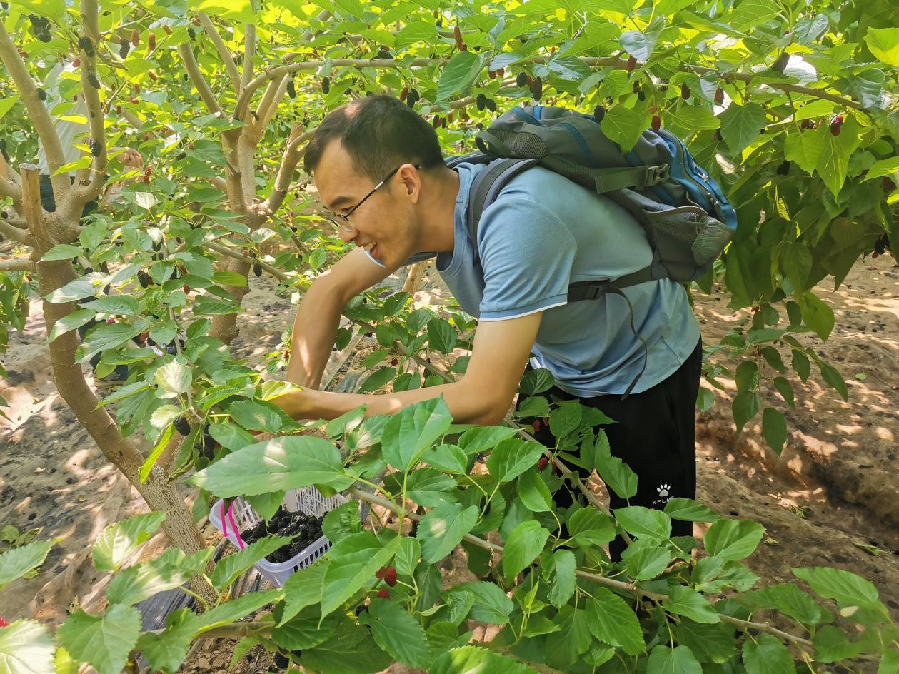 “蚕桑”作为学校的办学特色之一,在教职工心中都有着别样的情愫,桑葚采摘更是每年备受期待的活动,在那里,大家可以一起沐浴着夏日的阳光,徜徉在芳香四溢的桑葚园里,去体验亲手采摘的快乐。“成熟的桑葚是紫色的,轻轻一碰就会脱落。没有完全变紫的桑葚口感偏酸,不宜采摘。桑葚比较脆弱,采摘的时候要轻拿轻放,以免果实受损……”,大家边采摘,边交流,桑葚园内一片欢声笑语,