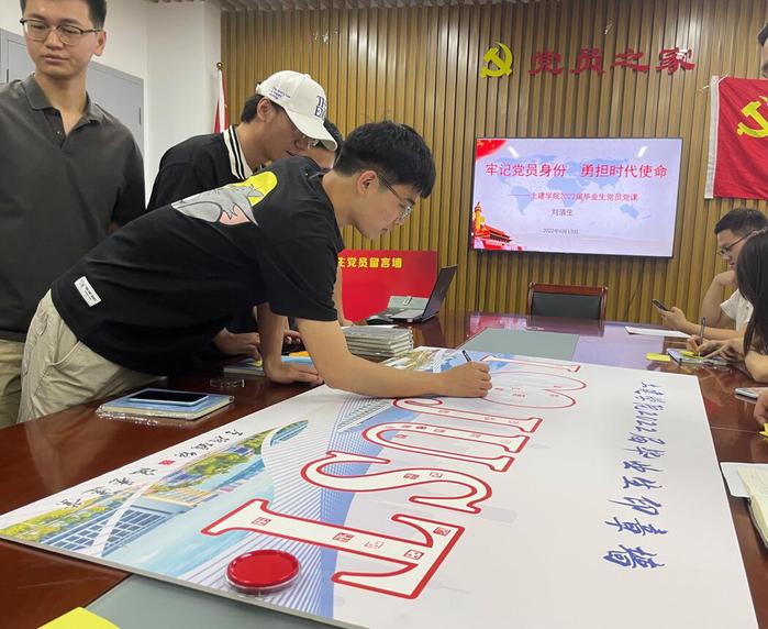 紧接着,刘书记赠与毕业生党员纪念品—茅以升精神主题笔记本,希望毕业生党员今后能够充分践行茅以升“爱国精神、奉献精神、求真精神、奋斗精神”,奋进在新时代,激荡新气象、成就新作为,为实现中华民族伟大复兴的中国梦凝聚磅礴力量。最后,毕业生党员纷纷在印章墙上留下属于自己的印章,并留下对母校的期许与不舍。(鲍旭东)