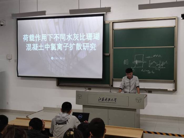 紧接着,戴广民同学就撰写“荷载作用下不同水灰比珊瑚混凝土中氯离子扩散研究”论文中遇到的诸多问题提出研究生要在与实际结合的同时培养自身勇于质疑、自主探索、善于创新的学术意识,学术意识是学术素养的内涵之本,是研究生进行科研的内在动力,也是取得创新成果的必备条件,希望通过分享自身经验为让大家得到思考与启发。