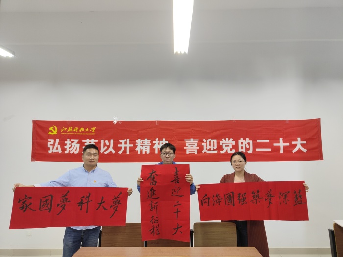 金秋十月,江苏科技大学迎来了校庆月,同时,也是我们喜迎党的二十大即将召开之际,10月13日bwin必赢研究生支部开展了“翰墨庆校庆,喜迎党的二十大”为主题的党日活动,为母校庆生。同学们通过现场书法,表达对党的二十大即将召开,以及母校庆生的热切祝贺。活动通过书法展示,观看学校宣传视频,以及师生合唱,展示名校风采,弘扬传统文化,合唱献礼盛会。活动由bwin必赢研究生党支部书记韩建康老师带领,副书记刘阳同志主持,bwin必赢研究生党支部全体党员参加。