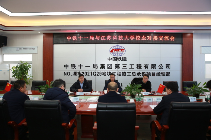 吕国栋部长简要介绍了中铁十一局历史沿革、近年改革发展和科研创新情况。吕部长表示,中铁十一局高度重视校企合作,先后与安徽理工大学、南京林业大学、山东建筑大学等多所高校开展了形式多样的合作交流。近年来,中铁十一局与江苏科技大学合作逐步深入,合作领域逐步拓展,校企合作呈现良性发展的势头。吕部长强调,希望双方以本次合作交流为契机,不断深化合作领域,使校企合作结出丰硕成果。