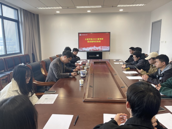 为持续推进考研工作,扎实做好2023届考研学子的精准指导和服务工作,帮助考研学生全面精细做好研究生复试与调剂准备,必赢官网于3月28日下午14点在土建楼560会议室召开考研复试指导交流会。本次会议邀请了学院党委副书记何长涛、副院长王仁华、3名研究生,会议由辅导员金菊主持。