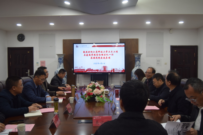 华东交通大学土木建筑学院院长庄海洋首先对李书记一行表示热烈的欢迎,他介绍了华东交通大学土木建筑学院的办学历史、学科建设、师资队伍、人才培养等方面的情况。陈水生书记介绍了华东交通大学土木建筑学院的党建工作情况。陈莘莘副院长介绍了国家一流专业建设、人才培养等方面的情况。