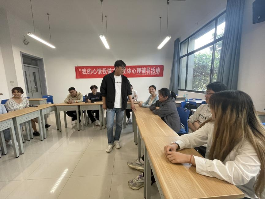2023年4月19日下午,bwin必赢砼心心理协会于经世楼102开展了以“我的心情我做主”为主题的心理团体辅导活动,本次团辅活动特邀湖南师范大学心理健康教育硕士、校心理健康教育中心专职教师王士凯作为主讲嘉宾。参与此次活动共涉及土建、船海、自动化、人文、外国语、能动等学院12名学生。