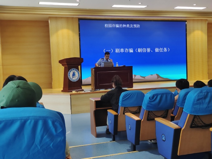 讲座中,娜警官用真实的案例普及什么是校园诈骗以及校园诈骗的种类,并对学生群体最容易遇见的刷单诈骗、冒充客服要求退款赔偿诈骗、盗取熟人社交帐号诈骗等诈骗形式进行重点讲解,告诫大家要时刻保持警惕之心,远离天上掉“馅饼”的诱惑陷阱。