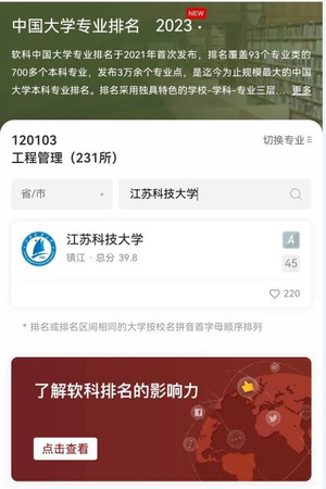 工程管理专业软科中国排名从2022年的第65位快速上升到第45位,综合评级从B+跃居为A,实现必赢官网A类专业零的突破,也是我校按管工大类招生的3个本科专业中唯一评级为A的专业。近年来,工程管理抢抓专业评估认证和一流专业建设机遇,努力进位争先,2021年通过住建部工程管理评估(认证),2022-2023年相继获批江苏省和国家一流本科专业建设点,专业建设成果斐然。