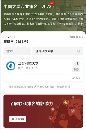 土木工程专业2023软科中国大学专业排名第83位,综合评级B+。土木工程专业现为国家级一流本科专业建设点,2018年通过华盛顿协议“工程教育专业认证”。建筑学专业经多年建设和追赶,成为全校唯一的“五年制”专业,2023软科中国大学专业排名第109位,连续3年上榜,显示良好的发展势头。