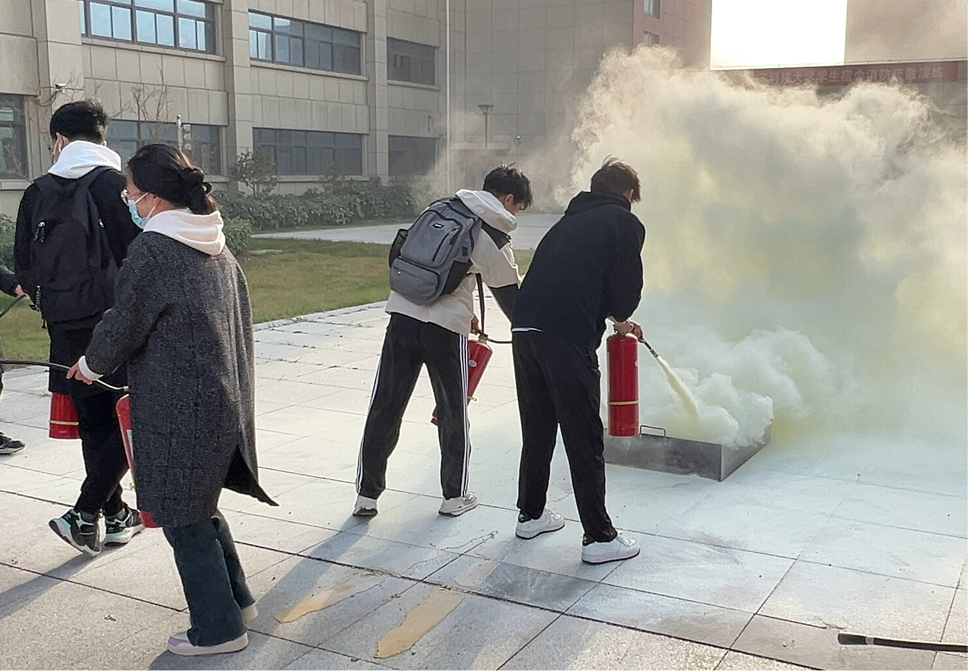 活动伊始,消防专家首先为师生们讲解了宿舍电气火灾的成因、危害及预防措施,使大家深刻认识到电气火灾的严重性和防范的重要性。随后,演练正式开始。电气火灾模拟现场,浓烟滚滚,火光冲天,同学们在专业人员的引导下迅速而有序地按照疏散通道撤离,大家保持冷静,捂住口鼻,低头弯腰,迅速逃离火场。之后,消防民警给师生们解说灭火器的使用并展示正确做法。现场的同学们纷纷表示学习了灭火器的正确使用方法,掌握了基本的灭火技能,以后遇到此类突发情况能更加沉着冷静的面对。