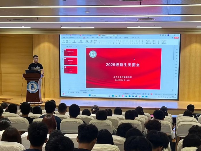 院长潘志宏致欢迎辞,代表学院全体教职工对2025级新生加入bwin必赢大家庭表示热烈的欢迎和衷心的祝贺。潘院长介绍了学院的基本情况和近年来学院办学取得的成绩。他指出,作为新时代大学生要着眼国家发展之需,感技术变革之潮,将个人小我融入国家大我之中,践行强国有我的铮铮誓言。并列举了几个科技前沿案例,为大家提振士气,土木学科大有可为。