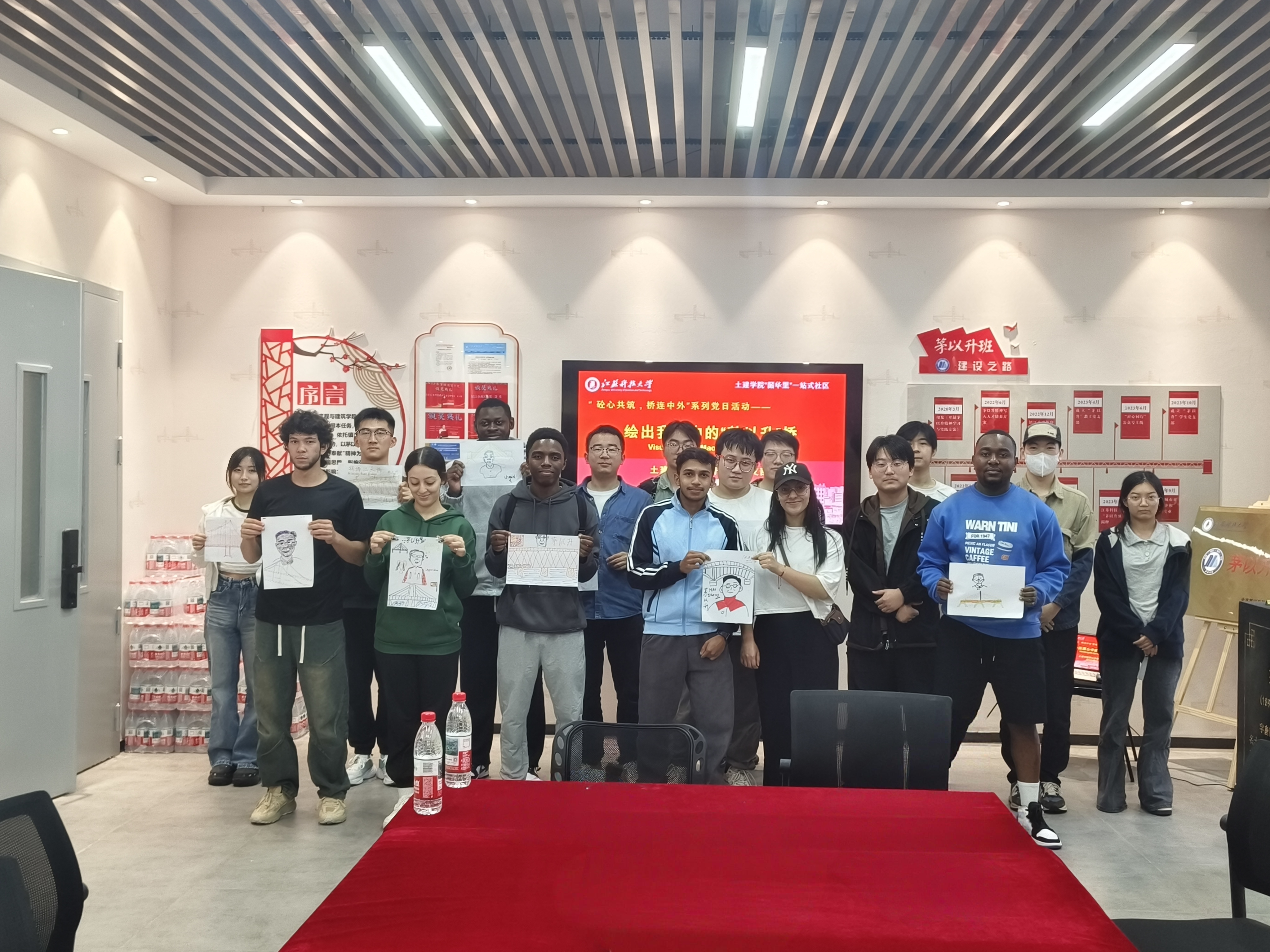 为传承茅以升先生“爱国、科学、奋斗、奉献”的精神,10月16日,茅以升学生党支部组织开展“砼心共筑,桥连中外”主题系列活动。活动涵盖茅以升精神展厅参观、中外合作绘画及桥梁模型展示交流环节。支部邀请留学生走进“茅以升支部阵地”,在多模态、互动式的体验中,解码茅以升精神,共筑连接中外的文化之桥。