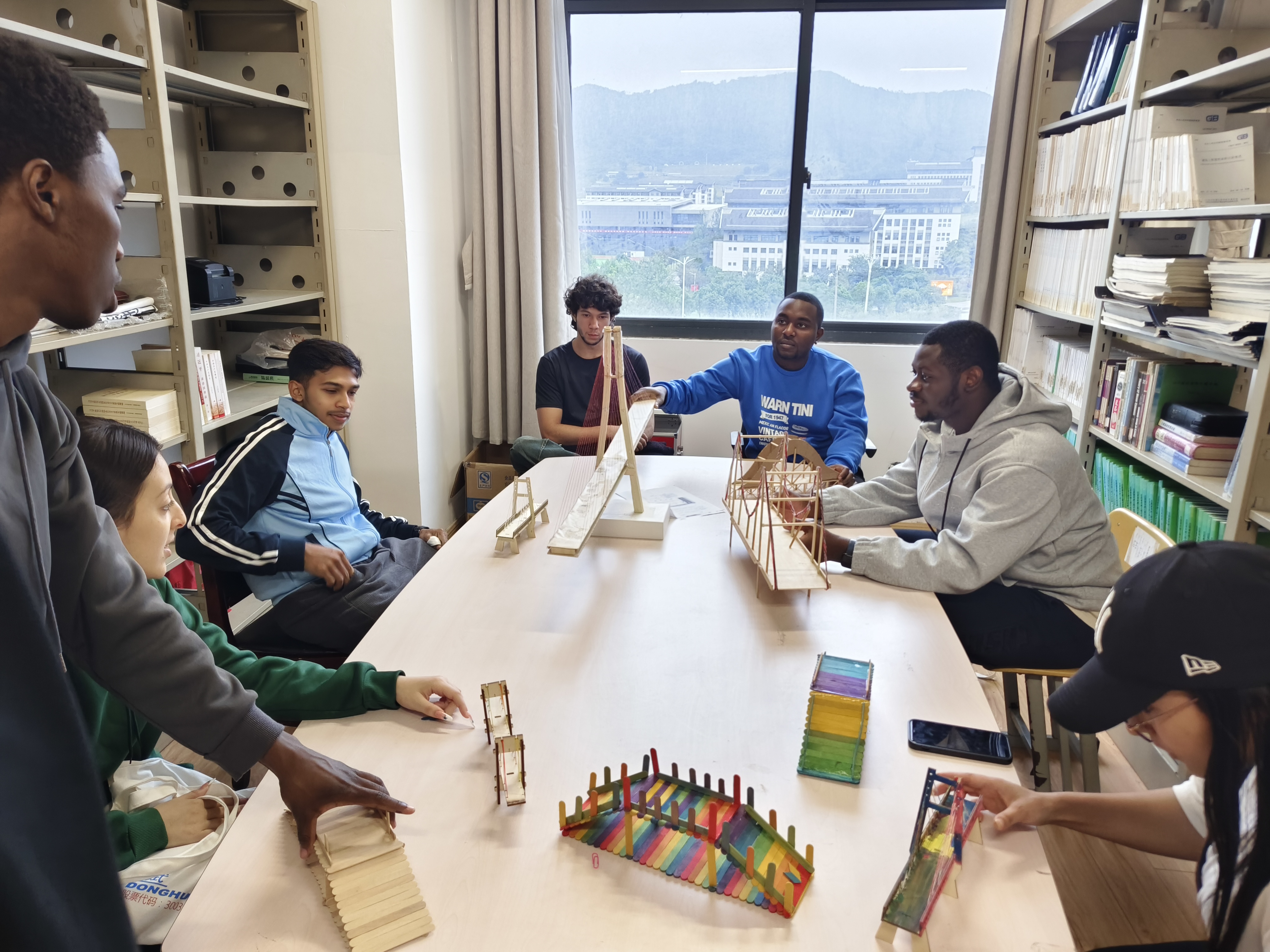 绘画结束后,师生移步520教室,参观学生自主设计与手工制作的桥梁模型。涵盖茅以升经典之作、全球名桥与创新桥型,精致模型吸引了众多目光,进一步丰富了大家对桥梁科学与美学的认知。
